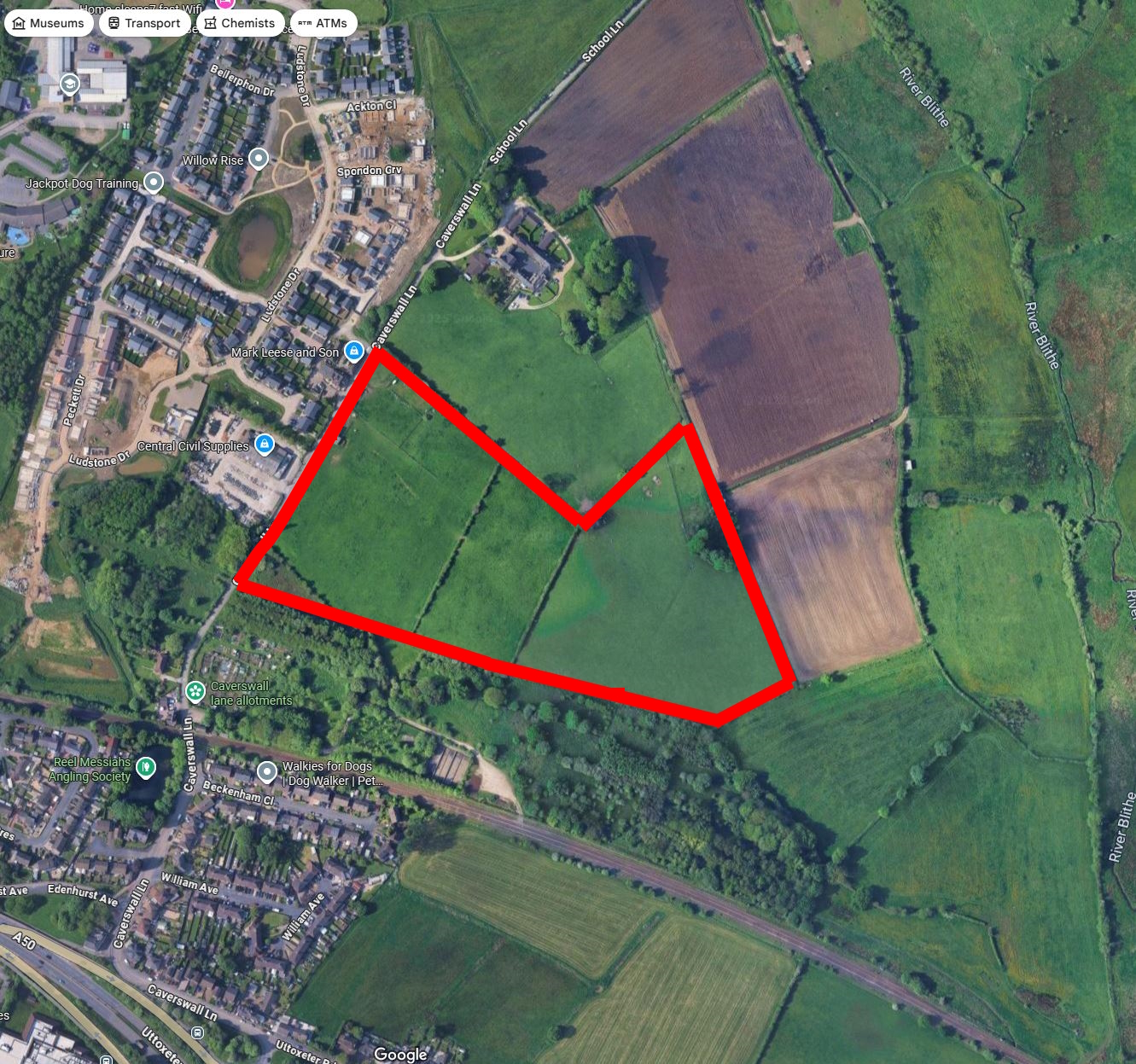 BL-3 is a block of beautiful greenbelt land to the East of Caverswall Lane, located within the Stoke-on-Trent county council area. This abuts the Staffordshire Moorland Greenbelt, leaving no buffer on the Stoke side, any development here will be visible to residents in Caverswall and the western side of Blythe Bridge. The land can be seen in the drone photograph below, the lush green immediately to the right of the woodland.